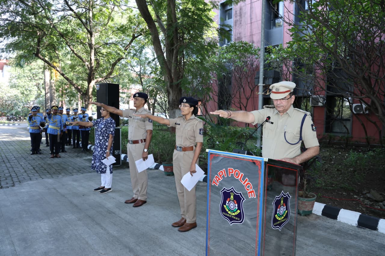 માનનીય પોલીસ સુપરિન્ટેન્ડન્ટશ્રીએ પોતાના સંબોધનમાં દેશના શહીદો તથા સુરક્ષા દળોના જવાનો દ્વારા કરાયેલ ત્યાગ અને બલિદાનને યાદ કરતાં સૌને દેશપ્રેમ, શિસ્ત અને રાષ્ટ્રીય સેવા ભાવના સાથે કાર્ય કરવાની પ્રેરણા આપી.
