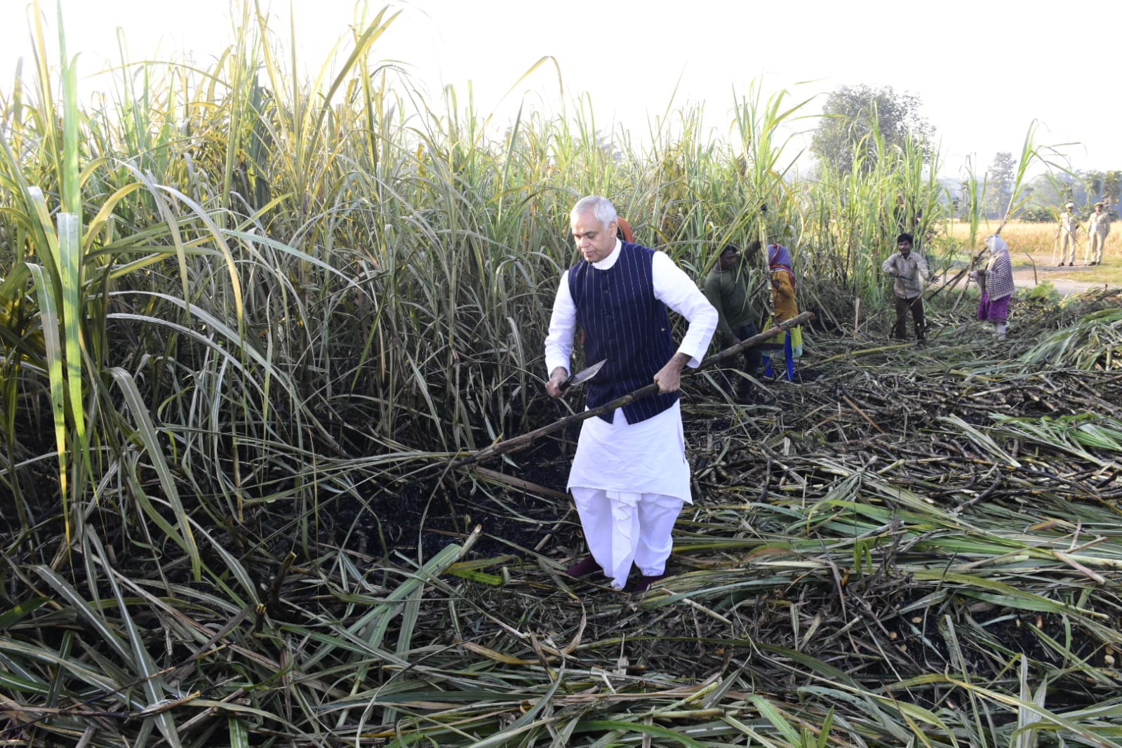 ફાર્મ ની મુલાકાત બાદ પરત ફરતા માર્ગમાં રાજ્યપાલએ માર્ગ કિનારે ખેતરમાં ખેડૂતોને શેરડીની કાપણી કરતા જોઈ, પોતાનો કાફલો અટકાવ્યો અને સ્વયં ખેડૂતો સાથે ખેતરમાં ઉતરીને શેરડીની કાપણી કરી હતી.