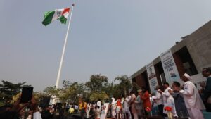 રાષ્ટ્રગીતની ધૂન સાથે જ્યારે રાષ્ટ્રધ્વજ આકાશને આંબ્યો ત્યારે સમગ્ર વાતાવરણ ‘ભારત માતા કી જય’ ના નારાથી ગુંજી ઉઠ્યું હતું.