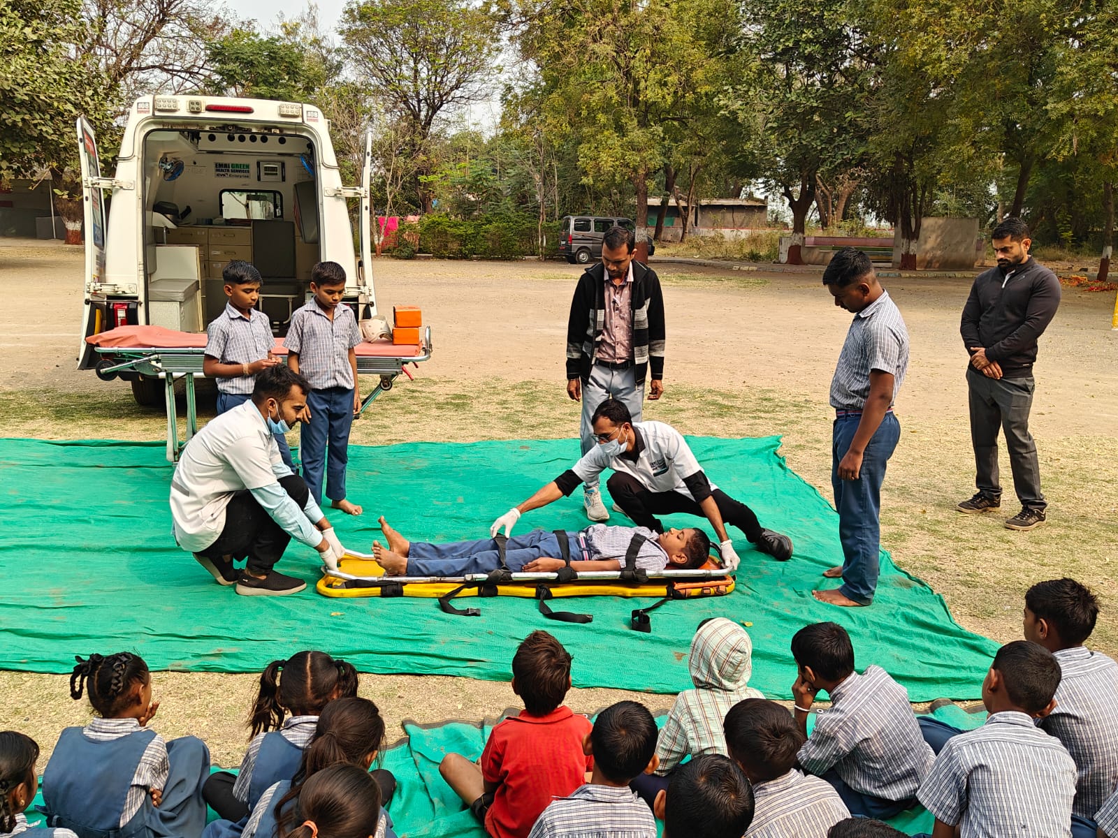 કલેક્ટર તાપીના માર્ગદર્શન હેઠળ જિલ્લાની ૪૬ મોટી શાળાઓમાં ૧૦૮ ઇમરજન્સી સેવા ટીમ તથા ફાયર ટીમ દ્વારા મેગા ઇવેન્ટ ડેમોસ્ટ્રેશન તેમજ ૩૨ શાળાઓમાં પ્રાથમિક સારવાર અંગેની મૂળભૂત માહિતી અને ડેમોસ્ટ્રેશન દ્વારા વિદ્યાર્થીઓ અને શિક્ષકોને માહિતગાર કરવામાં આવ્યા હતા. આ દરમિયાન કોઈપણ અકસ્માત કે તાત્કાલિક તબીબી પરિસ્થિતિમાં એમ્બ્યુલન્સ પહોંચે ત્યાં સુધી શું કરવું તે અંગે ઉપયોગી માર્ગદર્શન આપવામાં આવ્યું હતું.