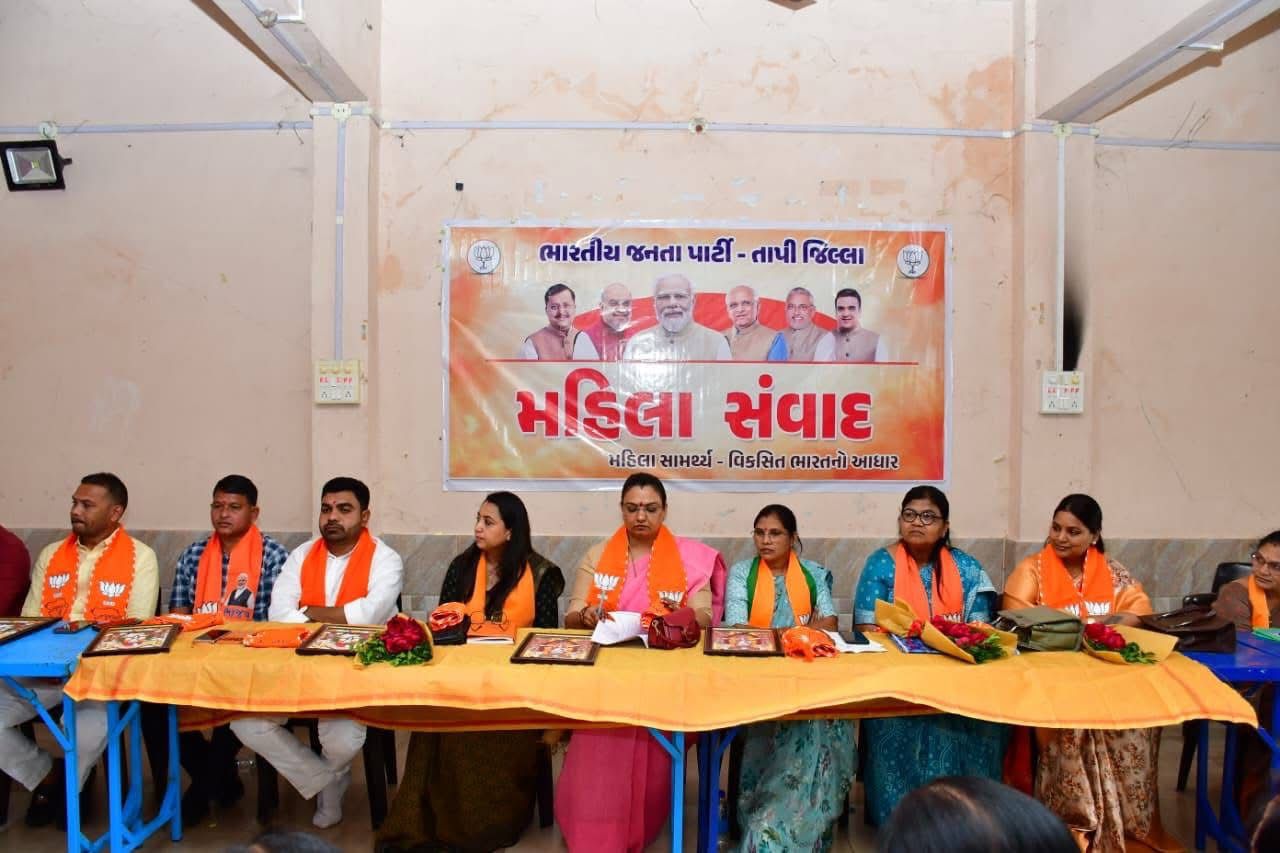 તાપી જિલ્લા ભારતીય જનતા પાર્ટી દ્વારા વાલોડ સ્થિત સિદ્ધિવિનાયક ગણેશ મંદિર ખાતે જિલ્લાના યશસ્વી અધ્યક્ષ સુરજભાઈ વસાવાની અધ્યક્ષતામાં ‘મહિલા સંવાદ’ કાર્યક્રમનું આયોજન કરવામાં આવ્યું હતું.