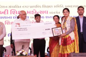 મુખ્યમંત્રી ભૂપેન્દ્રભાઈ પટેલના અધ્યક્ષસ્થાને AMC સંચાલિત નગર પ્રાથમિક શિક્ષણ સમિતિ દ્વારા આયોજિત ‘શતાબ્દી શિક્ષા મહોત્સવ’ અંતર્ગત નવનિર્મિત સ્કૂલ બોર્ડ ભવન તથા સ્માર્ટ શાળાઓના લોકાર્પણ અને શ્રેષ્ઠ શાળાઓ તથા શિક્ષકોના એવોર્ડ વિતરણનો કાર્યક્રમ સંપન્ન.