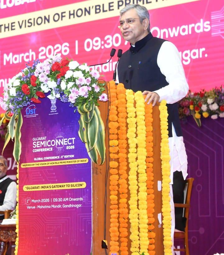 મહાત્મા મંદિર, ગાંધીનગર ખાતે ગુજરાત સેમીકનેક્ટ કોન્ફરન્સ 2026ના શુભારંભ બાદ કેન્દ્રીય રેલવે મંત્રી અશ્વિની વૈષ્ણવે જણાવ્યું કે, ગુજરાતમાં રેલવેના સર્વાંગી વિકાસ માટે કેન્દ્ર સરકાર દ્વારા લેવામાં આવેલા ઐતિહાસિક નિર્ણયોને પરિણામે રાજ્યમાં પરિવહન અને કનેક્ટિવિટીના એક નવા યુગની શરૂઆત થઈ છે…