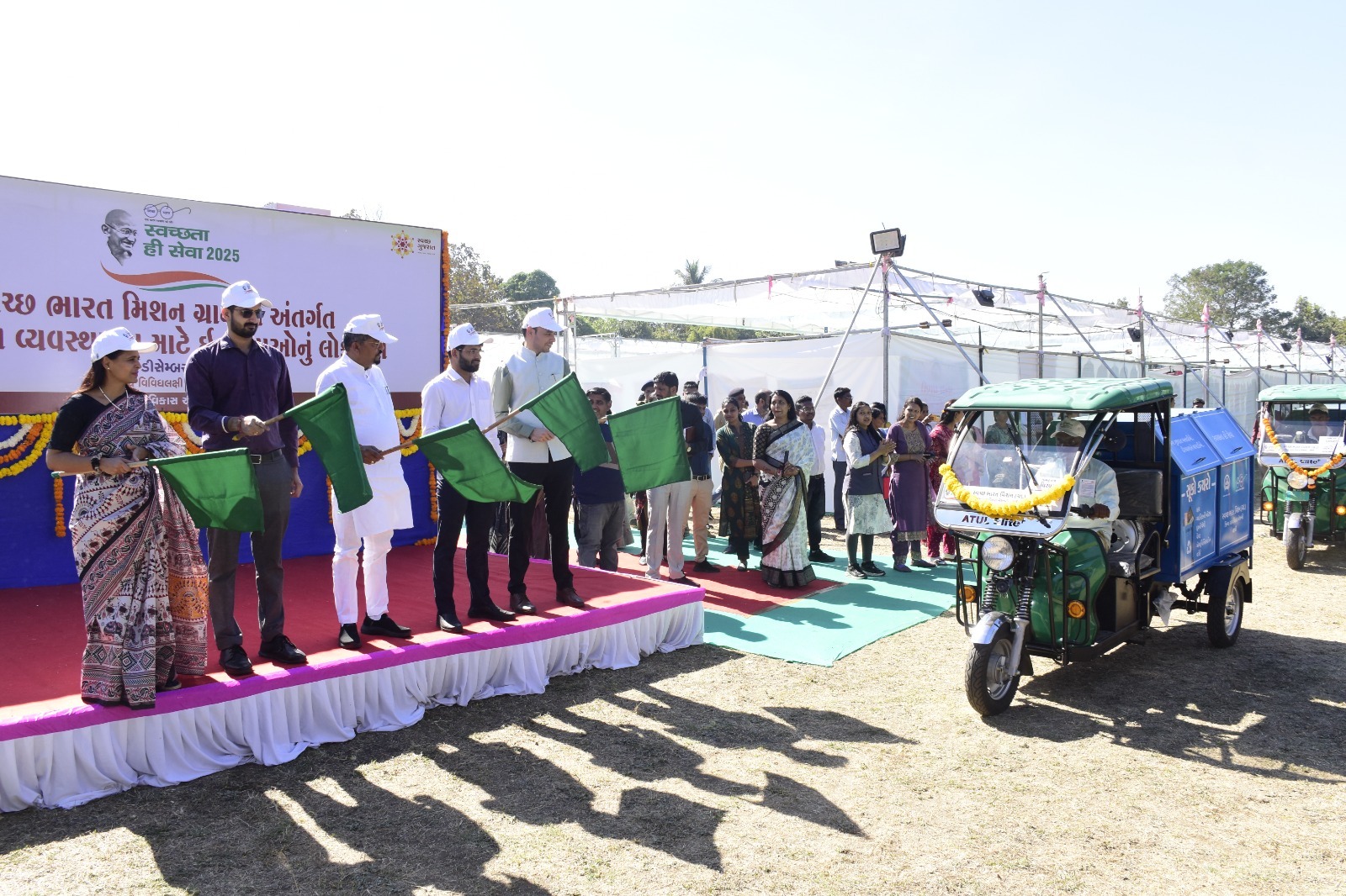 ૫૧ ઇ-રિક્ષાને લીલીઝંડી આપી પ્રસ્થાન કરાવતા આદિજાતિ મંત્રી નરેશભાઈ પટેલ